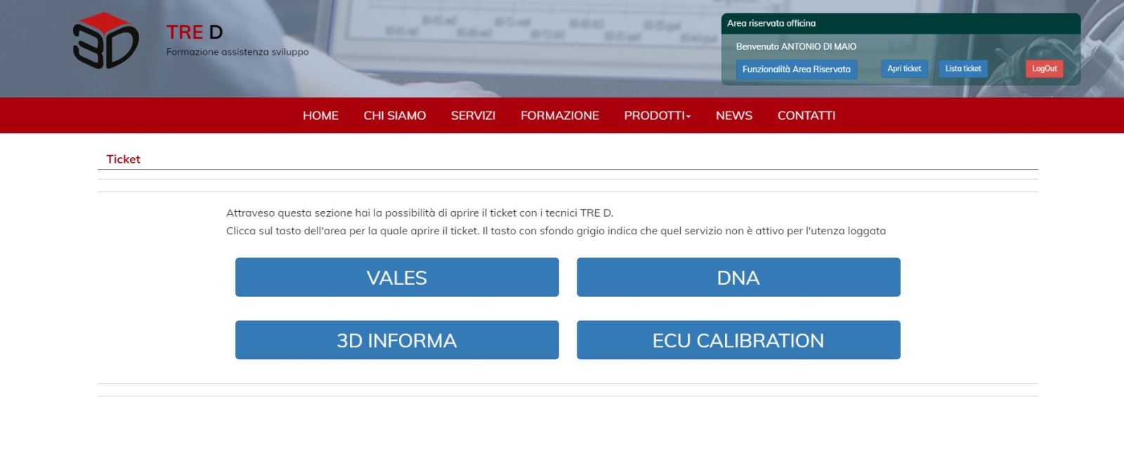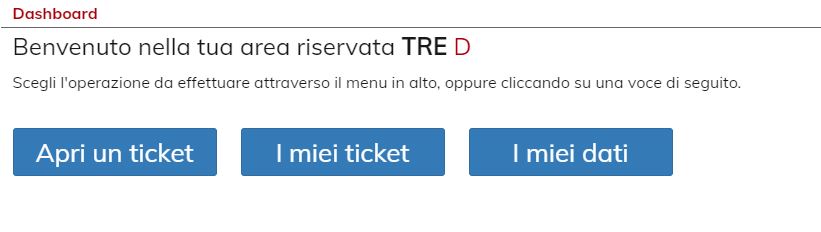 - Apertura ticket (Per richiedere una nuova assistenza) - I miei ticket (per accedere alla lista delle assistenze passate o in corso) - I miei dati (Per poter consultare la tua anagrafica ed eventualmente modificarla)